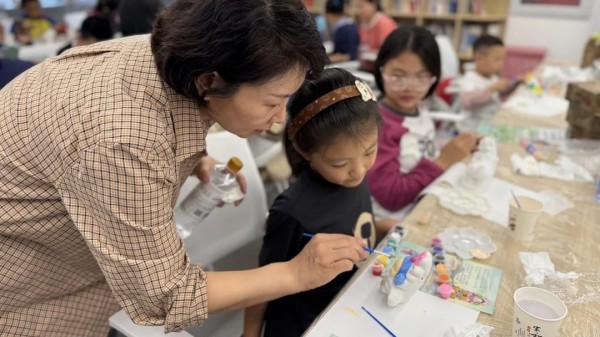 “别看兔儿爷小巧,描绘起来可真得沉住气!”在三里屯街道图书馆,十几组亲子家庭齐聚一堂,在非遗泥彩塑的指尖技艺中,感受传统节气与老北京民俗交融的秋日韵味。