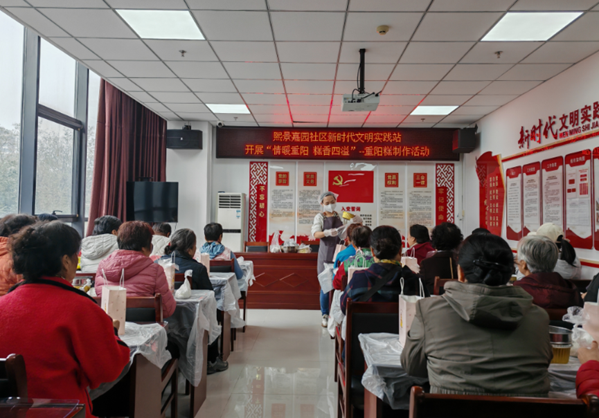 农历九月初九重阳节,为传承尊老、敬老、爱老的传统美德,弘扬中华优秀传统文化,房山区长阳镇熙景嘉园社区以“情暖重阳 糕香四溢”为主题开展了重阳节活动,邀请社区老年朋友们齐聚一堂,在手工制作重阳糕的温馨互动中,共度佳节、传递温情。