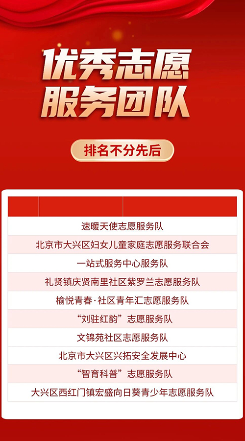 由大兴区委宣传部、大兴区精神文明建设委员会办公室主办,以“文明实践新力量 共建共享新大兴”为主题的大兴区新时代文明实践“双50”工程主题活动,通过孵化、培育、扶持等环节,评选出优秀志愿服务团队、优秀阵地,现将名单予以公布: