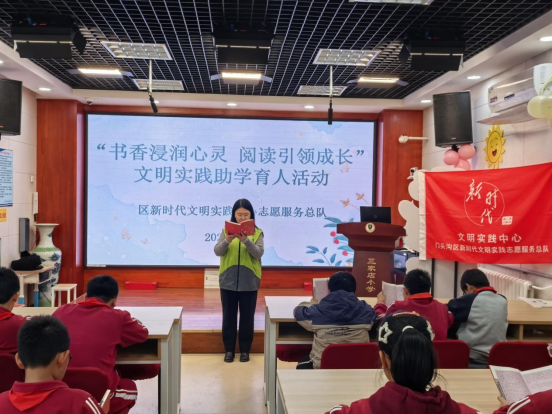 为厚植少年儿童家国情怀,推动中华经典文化与红色教育深度融合。近日,门头沟区新时代文明实践中心志愿服务总队到三家店小学组织开展“书香浸润心灵 阅读引领成长”文明实践助学育人活动。以《少年中国说》为重点推广书目,通过专业解读与互动教学相结合的方式,引导未成年人深入理解经典,让家国情怀在阅读中滋养、成长。