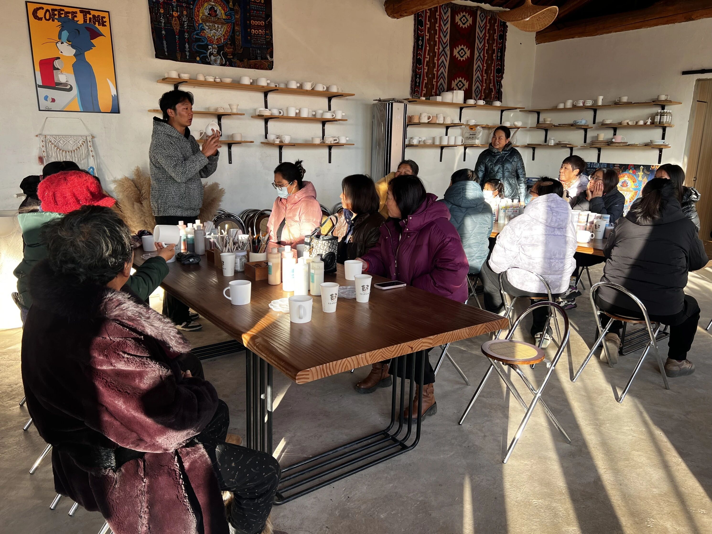 在古色古香的陶艺馆内,专业讲师带领大家穿越时空:从远古陶器的文明曙光,到民俗用器的生活智慧;从传统工艺的匠心独运,到现代创作的突破创新。随后,每位参与者都获赠一个素坯陶杯和缤纷彩绘工具。在老师手把手的指导下,有人勾勒出清雅脱俗的梅兰竹菊,有人绘制了童趣盎然的卡通形象,更有人题写下寓意吉祥的祝福语。整个创作过程中,专注的神情与欢快的笑声交织,每个人都沉醉在这场与泥土对话的艺术盛宴里。经过精心创作,一个个造型独特、釉色温润的陶瓷杯逐渐形成,杯身上保留者创作者们手指的温度和情感的印记。