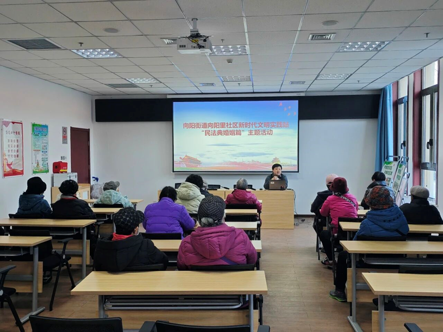 为进一步做好《中华人民共和国民法典》普法宣传工作,切实加强居民的学习宣传教育,推动其走入群众。房山区向阳街道向阳里社区新时代文明实践站举办“民法典——婚姻篇”专题普法活动。