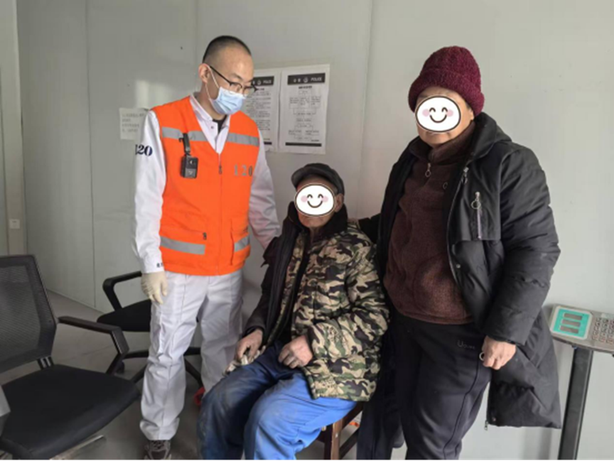 老人醒了,但新的难题接踵而至,老人无法说出姓名,身上没有手机,也记不清家人的联系方式,只依稀记得家在“交道后街”。“老人走失这么久,家人一定急疯了!”120车组人员心急如焚,商丽杰敏锐地抓住“交道后街”这一关键线索,立即拨通了该村“熟人”的电话。一通电话,多方联动。经过一番紧急打听与核实,一个令人揪心的消息传来:这位老人已于2月28日离家走失,家人已经苦苦寻找了整整两天!这一刻,急救车组不仅是医护人员,更成了连接亲情的纽带。医护人员随即与现场民警通力协作,迅速锁定了老人家属,并约定在琉璃河派出所汇合。