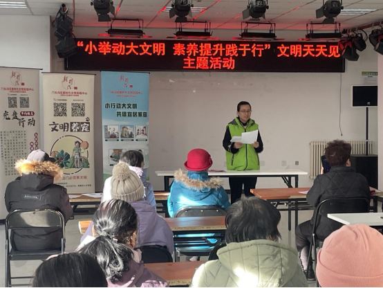 为倡导文明新风尚,推动文明理念深入人心。近日,门头沟区委宣传部、区新时代文明实践中心在永定镇西峰家园社区举办“小举动大文明 素养提升践于行”文明天天见主题宣传活动。此次活动以创新宣传形式为载体,志愿者担任“文明主播”,通过线上线下联动的方式,系统推进文明居住、文明交通、文明餐桌、网络文明四大领域宣传教育,吸引众多居民积极参与。