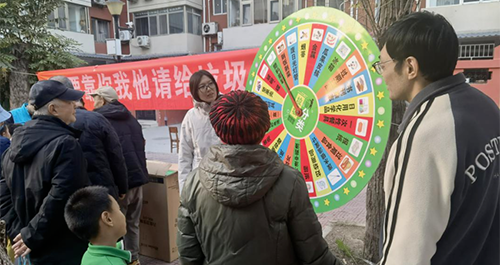 金惠园二区社区开展“趣味互动学分类 绿色理念入人心”主题宣传活动。在“垃圾分类大转盘”游戏中,居民们根据问题,判断垃圾分类的类别,回答正确者获得奖励;模拟分类游戏区域,居民们将“垃圾卡片”准确投入对应分类桶,在巩固垃圾分类知识的同时,让环保理念在实践体验中深入人心。