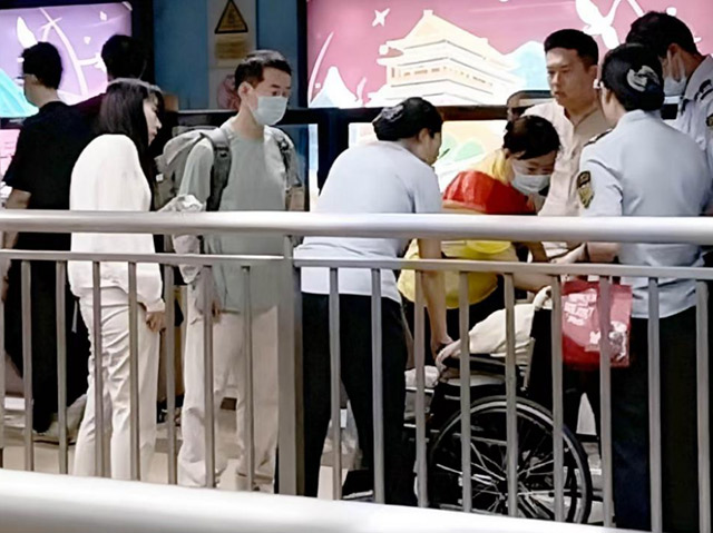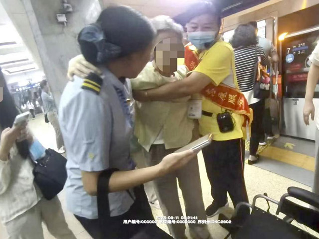 站务人员很快赶到现场,看老人无法自主站立,让引导员帮忙推来站内的备用轮椅。众人协力将老人转移至轮椅上。孔淑香见老人大汗淋漓,取出纸巾为其擦汗。站务员同步联系家属,得知老人有甲减病史后,立即拨打了120急救电话。几位参与救助的乘客同文明引导员、地铁站务员一同静静守候,随时准备提供帮助。在大家的守护下,老人逐渐恢复意识。