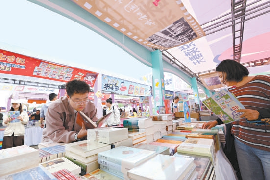 在书市现场,读者专注选书。