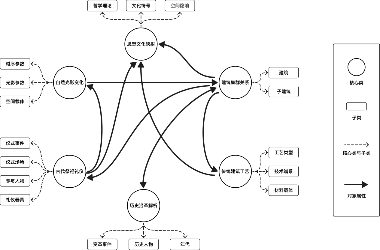 思想文化映射方面:关联中轴线空间布局与《周易》方位理论(如“南为乾,北为坤”),同时在图谱中嵌入“文化符号”实体节点,标注其象征意义,解析文化符号与建筑功能的深层关联。