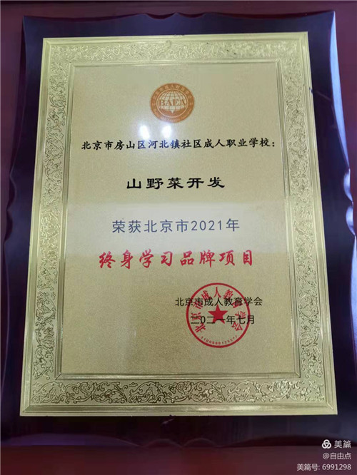 时间:2021-09-27秋风送爽,瓜果飘香,房山区河北镇社区成人职业学校的山野菜开发项目获得了北京市成教学会遴选的“终身学习品牌项目”荣誉称号,颁奖仪式于2021年9月15日在市成教学会隆重举行。此项荣誉是在各级领导的支持和全体教职工的努力下取得的,是成教学会对山野菜开发项目发展的充分肯定和鞭策。