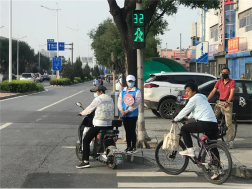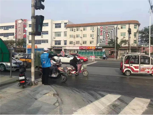 志愿者们站在十字路口人行斑马线处,协助交警、交通协管员耐心地引导行人和非机动车遵守交通信号,各行其道、有序通行,礼貌地劝阻行人和非机动车闯红灯、走机动车道、逆行等不文明交通行为;提醒允许通行的车辆及行人,注意车辆小心慢行;主动上前询问行人通行方向,为过往行人指路等。
