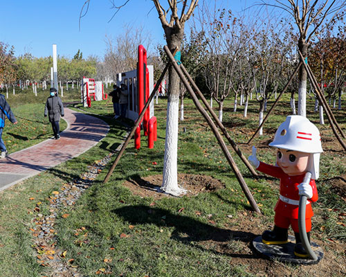记者在公园内看到,园内设有不同类型的消防卡通人物雕塑,消防安全标语,从道路到垃圾桶,消防元素随处可见,公园里设置有消防知识环路、消防宣传中心文化廊、消防科普宣传带、消防知识宣传带、消防法制宣传带、消防主题休闲角以及小小消防员训练营等7个区块配套设施,让市民在游园过程中零距离体验消防文化。通过实物、图文相结合的方式,展示了消防器材使用、消防相关法律法规,以及生活中的消防小知识等,市民还可通过翻牌游戏的方式学习到消防小知识。