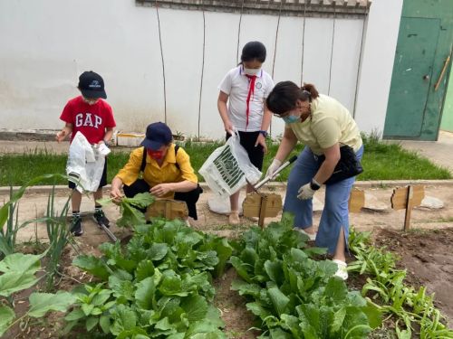 孩子们头顶着烈日,脸上冒着汗珠,但仍开心、卖力地将新鲜的水萝卜和小白菜从泥土中拔出来、精心打包好,亲手送到社区老年居民家中。老人们接到这份特殊的礼物后都笑开了怀,连声称赞孩子们:“好孩子们,辛苦了,你们太棒了!”