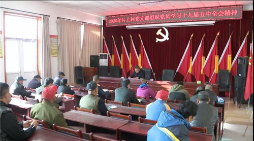 张坊镇片上村开展学习贯彻党的十九届五中全会主题党日活动,带领村内党员和村民代表共同学习会议精神。号召党员干部和将村域治理工作与党中央工作部署相结合,不断提高政治素养和履职能力。