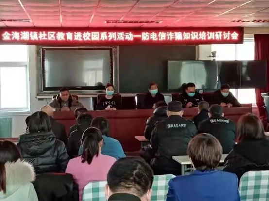 时间:2021-01-0712月23日,金海湖镇开展“社区教育进校园系列活动(一)防诈骗知识培训研讨会”。邀请镇派出所领导走进靠山集中心小学,结合镇域内发生的实际案例,面向全体教师和部分家长开展以预防电信诈骗知识为主题的法制讲座,现场发放《防诈骗知识宣传手册》,并进行深入研讨交流,为教师和家长解答生活中遇到的电信诈骗等诸多问题,近100人参加活动。
