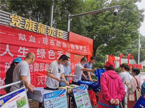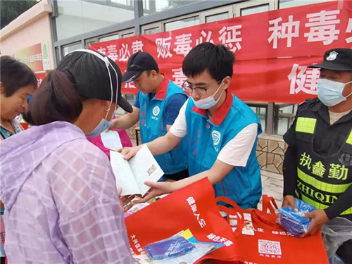 近日,黄村镇禁毒办联合孙村派出所和辖区内鑫方盛控股集团,按照“六进”(进单位、进农村、进社区、进学校、进家庭、进场所)的要求,到辖区内著名企业鑫方盛集团组织开展“6.26”国际禁毒日宣传工作。黄村镇禁毒办紧紧抓住“6·1”禁毒法颁布施行纪念日、“6·3”虎门销烟纪念日和“6·26”国际禁毒日等主要时间节点,结合建党100周年安保维稳及常态化新冠肺炎疫情防控工作,以“健康人生、绿色无毒”为主题持续开展形式多样、内容丰富、群众喜闻乐见的禁毒宣传教育主题活动,广泛发动辖区群众积极参与,努力营造全民参与禁毒的良好氛围。