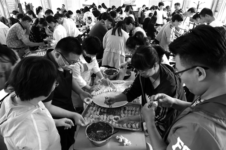 近日,怀柔区泉河街道组织机关职工包饺子比赛,约100名职工参赛。包饺子过程中,大家交流经验,配合默契,笑语不断。