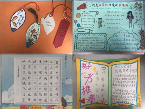 精美的书签一面是孩子们的精美画作,另一面则书写着“书山有路勤为径,学海无涯苦作舟”“今日事 今日毕”“读书破万卷下笔如有神”等至理名言,一张张书签寄托着孩子的学习热情。“啄木鸟在行动”活动学生们则走进社会查找身边的错别字,他们发现有的饭店门前的豆腐的“腐”写成了“付”,修车店门前的好消息的“消”写成了“悄”,零售店铺门口的“另”售,这样的实践活动不仅提高了学生们使用汉字的能力还培养调查研究的兴趣。