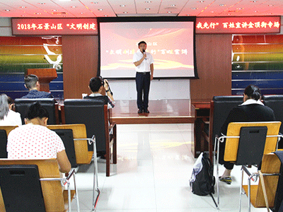 为了全方位地宣传创建全国文明城区的目的和意义,把创建工作的紧迫感、责任感和使命感用百姓宣讲的形式传达给每一位居民,展示精神文明创建的内容和活动成果,充分调动起市民群众主动参与的热情和积极性,石景山区“文明创建我先行”百姓宣讲团来到金顶街街道,分别在机关、西福村社区居委会开展百姓宣讲活动,共计200名机关干部、社区工作者及老街坊志愿者参与。