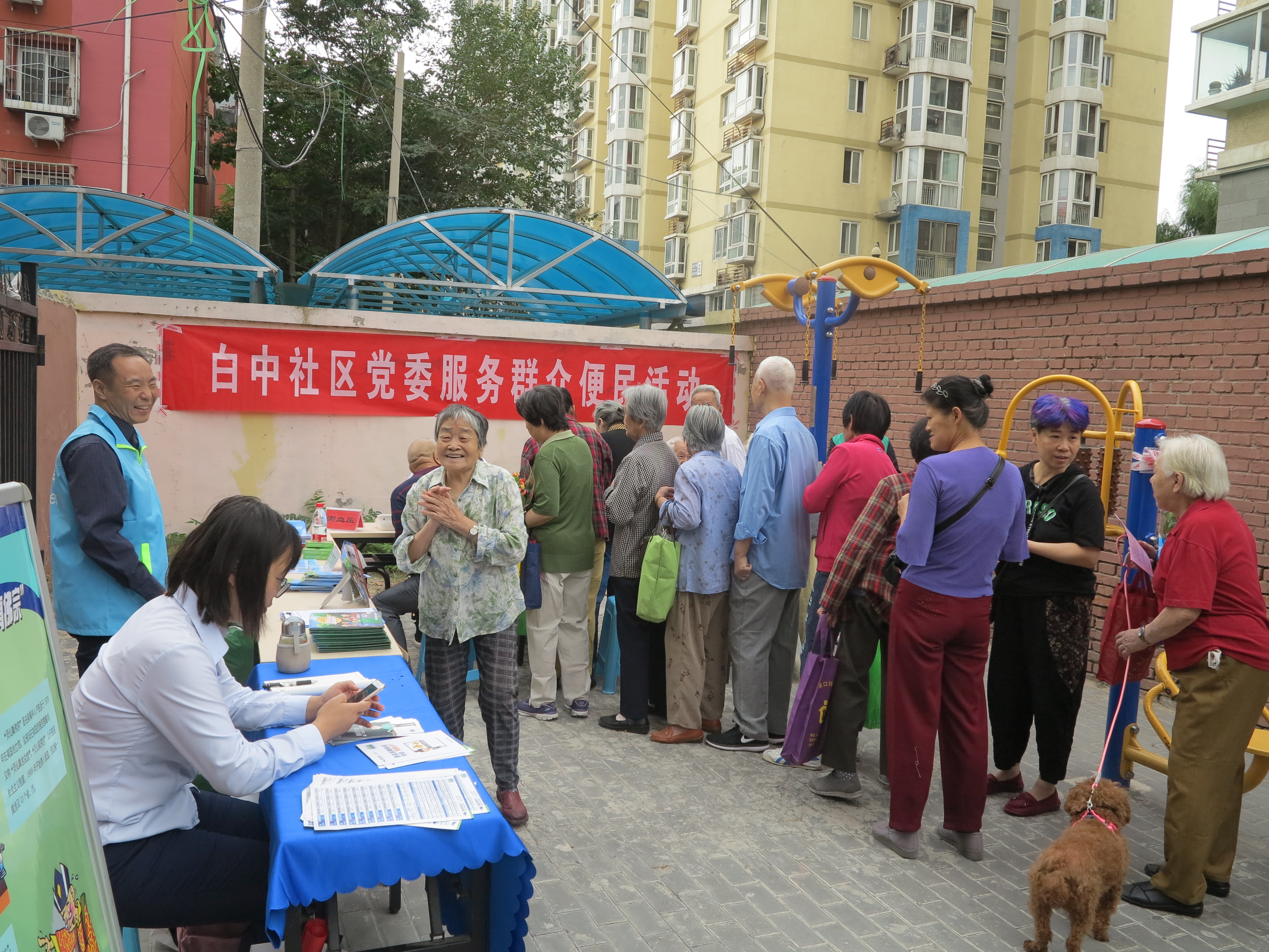 活动现场,志愿者们共同为辖区内的居民以及独居老人们检测血压血糖、中医养生咨询、理发、配钥匙、防诈骗政策咨询、宣传反邪教注意事项、宣传垃圾分类知识、宣传计划生育常识、宣传为既有多层住宅加装电梯事宜,此外,北京广播电视报还与社区联合开展了旧衣物换购活动。