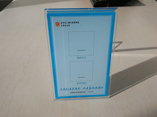 二、实用效果好:扫码牌美观大方、易于摆放,克服商户移动支付收款牌摆放杂乱、容易污损、丢失、更换成本高等缺点,方便消费者扫码付款、消费维权、知晓文明城区创建;方便商户放置手机、笔、记账本等常用物品;