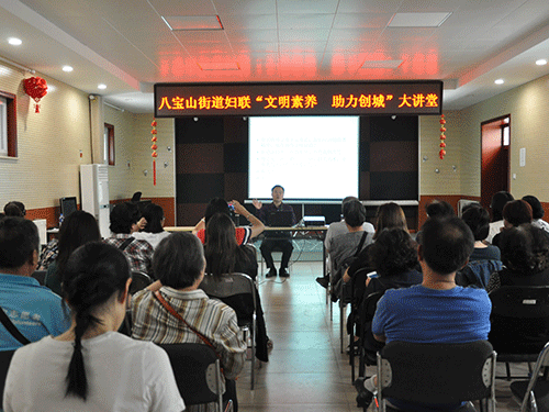 为提高居民综合素质,助力“创城”工作, 9月20日,八宝山街道妇联组织辖区内居民开展了“文明素养 助力创城”素质工程大讲堂活动。