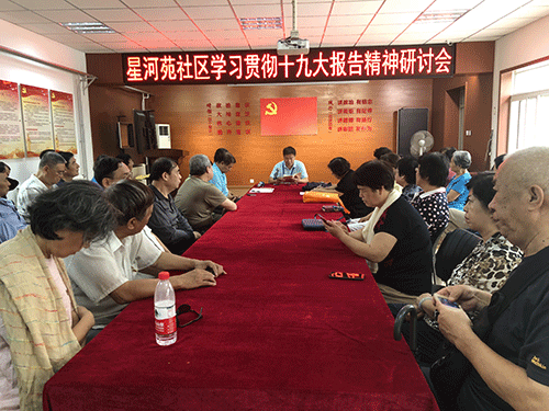 为深入学习贯彻十九大报告精神,学习习近平新时代中国特色社会主义思想,星河苑社区开展学习贯彻十九大报告精神研讨会,党员、积极分子积极参会学习。