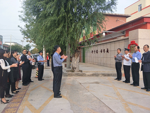 首先,李宝虎局长和杜成喜书记共同为“高宝来爱民服务岗”揭牌。房山区教工委杜成喜书记代表区教工委及学校全体师生、家长对房山区公安干警用辛苦付出换来百姓的平安表达了感谢之情,同时也表示,学校设立“高宝来爱民服务岗”,对学校周边安全环境的维护和学生上学放学特殊时段的管理起到了非常重要的作用,希望学校也要加强对学生的教育,共同站好服务岗。李宝虎局长对全体“高宝来爱民服务岗”干警提出要求:值好勤、站好岗,树立“高宝来爱民服务岗”的良好形象,在平凡的岗位中造福一方百姓。