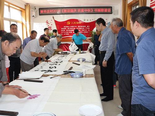 9月27日,房山区拱辰街道在黄辛庄村举办了“喜迎国庆、欢度中秋”书法联谊会。活动邀请了房山区书协主席候振海先生和多位书画名人,参加活动的还有本村多位书法爱好者,大家欢聚一堂,现场墨香四溢,笑语轻盈。