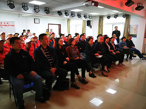 9点30分,在庄严、洪亮的国歌声中,全体人员起立、脱帽向会场正中悬挂的五星红旗敬礼。