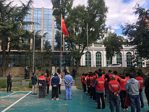 国庆节即将到来。模北社区组织在职党员们在电力培训中心广场,齐聚在国旗下,讲述国旗的故事。让在职党员们再次感受国旗的魅力,听一听在战争年代、和平时期,中国人民是怎样捍卫国旗的尊严。