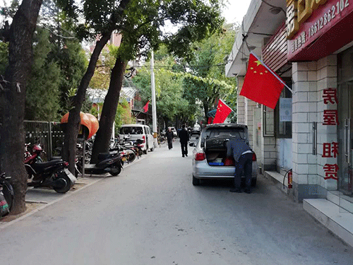 会议结束后,各个楼门长、物业公司就纷纷将刚领到的国旗插在了楼门前。花园村社区还为辖区内的20家商户授予了国旗,商户们贯彻社区吹哨、商户报道的精神,都积极配合升挂国旗。到9月29日下午15时,小区的主干道、单元门口、商铺门前都已悬挂上了崭新的国旗。100面五星红旗在花园村社区迎风飘扬,营造出“家家挂国旗 欢喜迎国庆 处处彰显爱国情”的浓郁氛围。