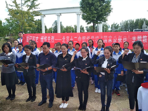 9月30日是国家法定烈士纪念日,为了缅怀英烈弘扬革命精神激发爱国热情,房山区北京十二中朗悦学校来到石楼镇蒋维平烈士陵园举行了“国家公祭日”主题教育活动。