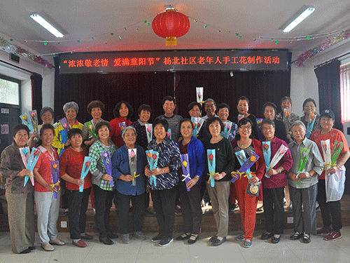 时间:2018-10-10敬老、爱老、助老是我们中华民族的传统美德,为了传承敬老文化,提高社区老人生活品味,倡导积极向上的生活方式,展现老年人风采,在重阳节来临之际,杨庄北区社区组织开展了以“浓浓敬老情,爱满重阳节”为主题的手工纸花制作活动。