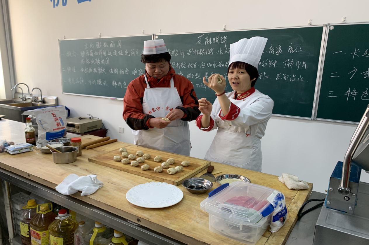 12月19日,房山区拱辰街道特地请来今日东方餐饮公司的老师傅专门北关东路社区居民培训老北京传统烧饼的制作,主要分理论知识和实际操作两个方面。老师告诉大家做烧饼必须得用标准面粉,这样才能保证烙出的烧饼松软且外皮酥脆。发酵粉、泡打粉、油酥、芝麻酱,酱油等食材的特性、用量和制作的详细流程等,老师讲的认真,居民们学的更是一丝不苟,不时拿起笔记录下重点内容。实际操作环节中,居民们先在旁边观察,然后在老师的指导下尝试亲自制作。“这个要一边抻着一边卷,这样烙出的烧饼层多。”“别紧张,酱油多蘸一点,哎,好,就这样,是不是芝麻蘸的更均匀了……”从和面、醒面、擀面、刷芝麻酱、卷面、成型到烧饼出锅。现场气氛热烈、香味扑鼻,有人用手机拍下刚刚出炉的成品留作纪念,也有人早已迫不及待的吃了起来,边吃边说,名师指点就是不一样哈,我这学生毕业喽。”
