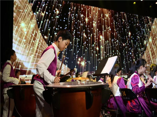 在管乐团的《豪勇七蛟龙》《爱我中华》的演奏中,音乐专场落下了帷幕。乐团的学生训练有序,功底扎实,完美的传递了曲目的感情和力量。