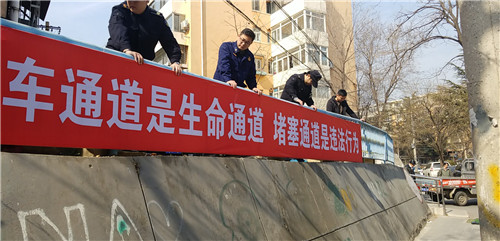 前期,老山街道通过安装硬质宣传横幅、发放宣传海报等多种方式开展消防安全宣传教育,动员广大社区居民不占用消防车通道停车,获得了社区居民的一致认可。清理行动前,安全生产检查队还以书面告知书形式,通知车主将占用消防车应急通道的车辆及时移出。为了让消防车通道治理效果得到巩固,街道还对消防车通道安装道路隔离护栏。