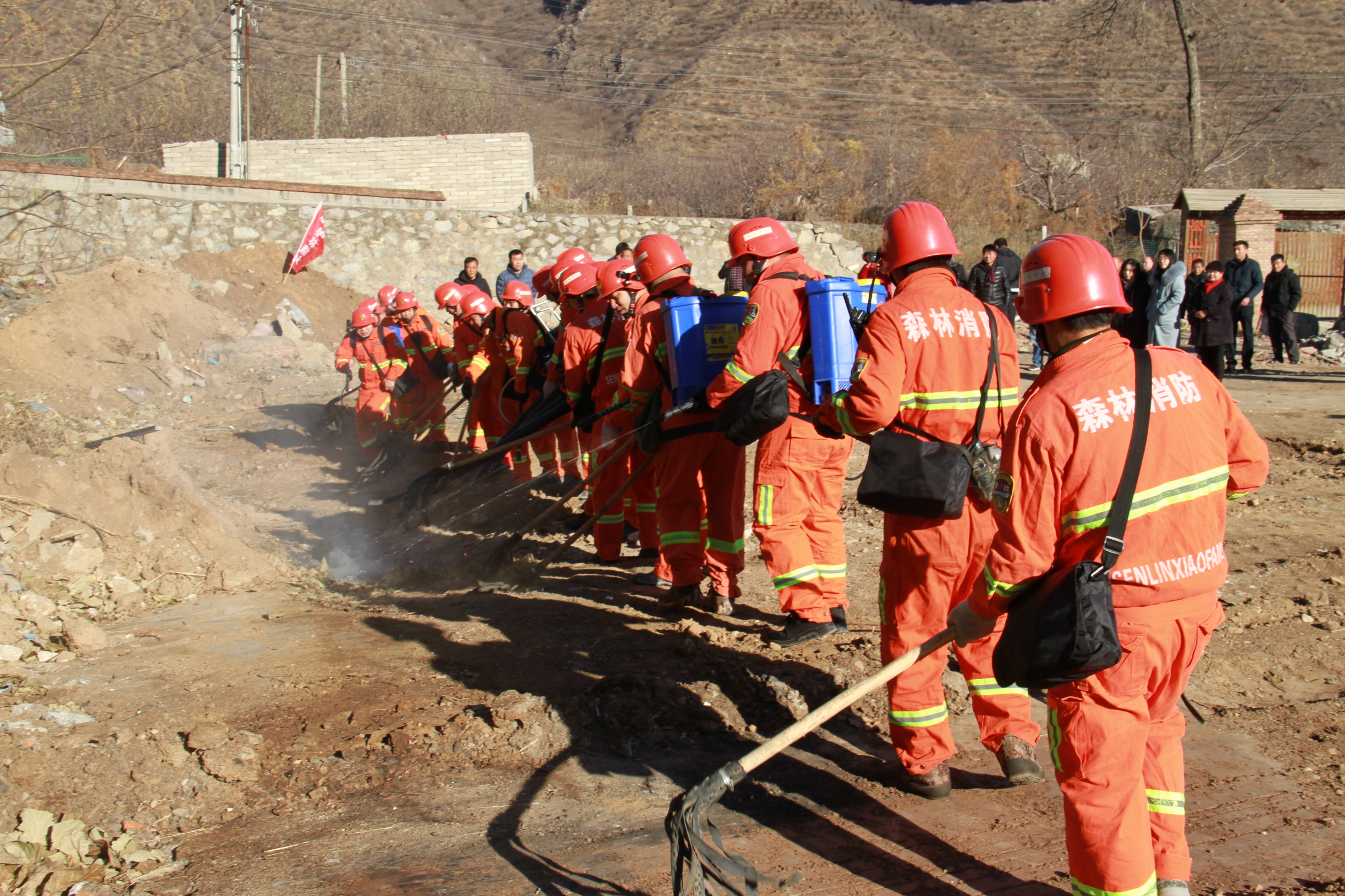 时间:2019-12-13为提高我镇周边森林火灾扑救的实战能力,增强森林消防意识,进一步明确职责、完善预案,提高森林消防组织指挥和应急处置能力,确保科学、迅速、有效地扑灭森林火灾。12日12日上午,门头沟区雁翅镇森防办组织开展2019年森林消防演练。参加演练和观摩的人员有,镇各工作组、应急大队、派出所、消防员以及各村党支部书记等。