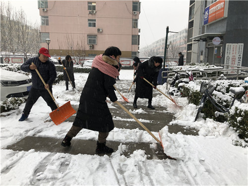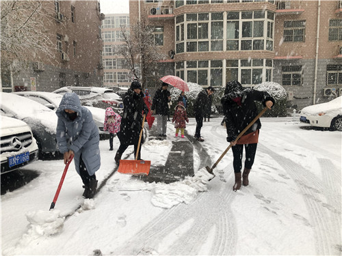 虽然大雪仍在飞舞,但寒冷的天气也挡不住党员干部群众们的热情付出,大家依旧干劲十足、团结协作、不畏严寒,挥舞铁锹和扫帚,对道路主干道和公共设施区域进行了全面清扫,确保了道路的整洁和群众的安全出行。