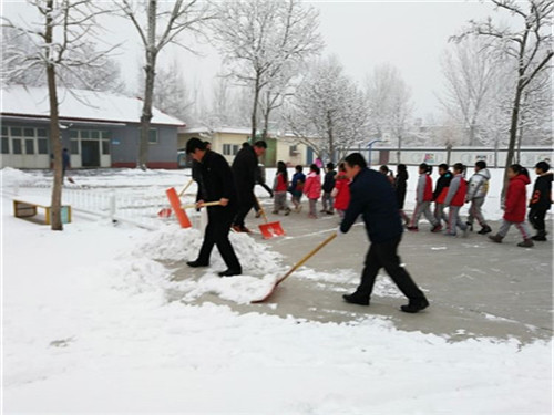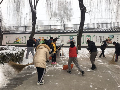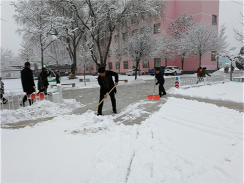 师生扫雪铲冰的身影为银装素裹的校园增添了一道靓丽的风景线,也给寒冷的冬日校园带来了温暖,为师生们安全出行提供了保障。