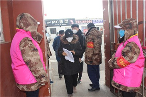 村口关卡是志愿者们每日必“打卡”的地方。她们认真仔细对过往车辆、行人进行检查登记,对进村的每一个人进行体温测量,帮助返京人员扫码登记相关信息。