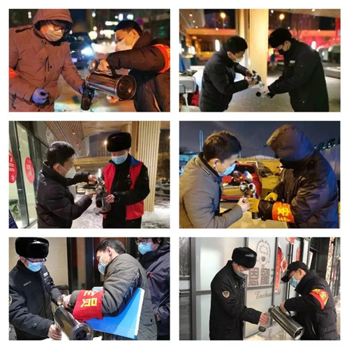 不仅送去一壶壶热饮,他还为那些来不及回单位领取防疫物资的值守同事们送去口罩、护目镜、免洗消毒液等,一件件防疫物资,一句句嘘寒问暖,看见他们的到来就像是看到了亲人。同事们是“战友”,而送去的物资就像是“子弹”,大家众志成城,团结一心,在这场没有硝烟的“战争”中奋勇拼搏,期待这场战“疫”早日胜利!
