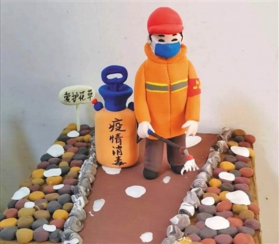造型栩栩如生的面雕,辟邪驱瘟、寓意团圆吉祥的押花葫芦,饱含抗“疫”必胜信念和祝福的剪纸,歌颂“逆行者”担当与坚守的蛋雕作品……东城区非遗大师们也纷纷用身边的素材,创作一系列非遗作品,歌颂“最美逆行者”。“众志成城,大爱无疆!我想用我的手艺,记录下这些感人的瞬间和动人的形象。”东城区面塑非遗传承人张俊显一口气创作了一系列经典面塑作品,记录一线防控工作者的日常工作轨迹。