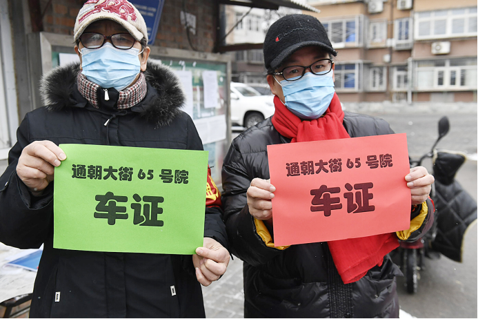 果园西社区党总支书记杨洁介绍,为提前应对返京高潮,社区联合各小区物业,通过车辆出入大数据及走访,针对春节前后未离京者,普遍发放白色车证,其中位于通朝大街65号院的铜材厂小区别出新意,用红色车证为群众送去一份喜气。对于近日返京者,物业及社区做好信息登记后,发放粉色、绿色或蓝色车证。