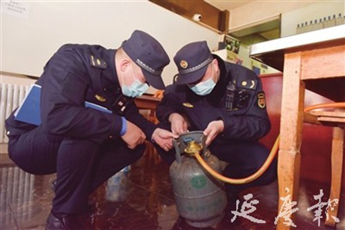 图为工作人员正在检查燃气罐安全情况。张延 摄