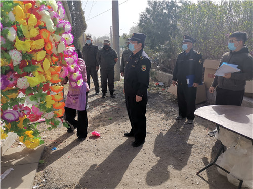 时间:2020-04-07今年清明节正值疫情防控关键时期,峪口镇市场监督管理所、城管、环境办等部门组成了联合执法队伍,出动10余人,4台执法车辆,针对街面秩序脏乱差、殡葬用品不规范经营、疫情防控等情况展开集中执法行动。