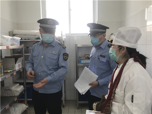 加强学校食堂疫情防控和食品安全管控。检查疫情防控措施落实情况,检查了疫情防控工作方案、消杀记录等,要求学校食堂实行师生错峰就餐制度,保持“一米”安全距离的就餐环境,严格落实餐饮疫情防控指引,最大限度减少师生聚集就餐风险。检查食品安全保障情况,执法人员重点查看了食品原辅料生产日期、进货台账、食品留样设备设施、各项制度的落实情况等事项,对食品安全管控的各个环节进行严格检查。