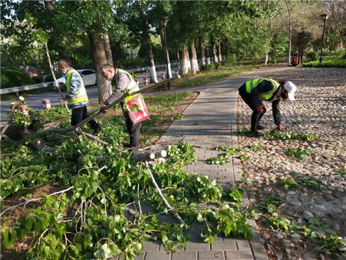 时间:2020-04-21据市气象台预报,北京市19日夜间至21日有4级左右偏北风,其中20日白天最大风力可达4、5级,阵风7、8级,局地伴有扬沙。海淀区马连洼街道市民诉求处置中心按照区园林局4月19日下发的《关于做好大风天气应对工作的通知》精神,认真落实绿化应急处置工作。
