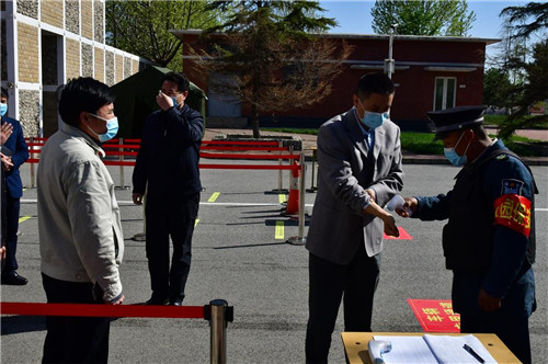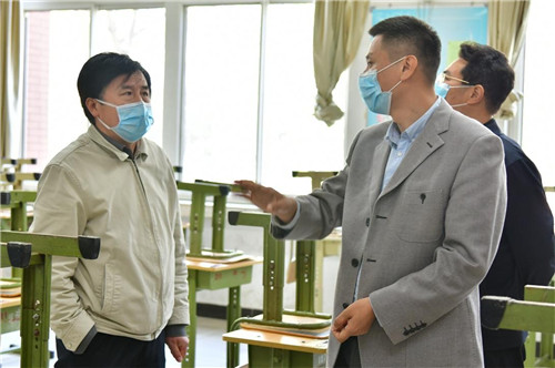 2020年4月21日下午,房山区政府副区长于吉顺、周口店镇党委副书记、镇长毕胜、周口店镇教育助理邱强等领导来到房山五中检查学校初三年级试开学准备情况。
