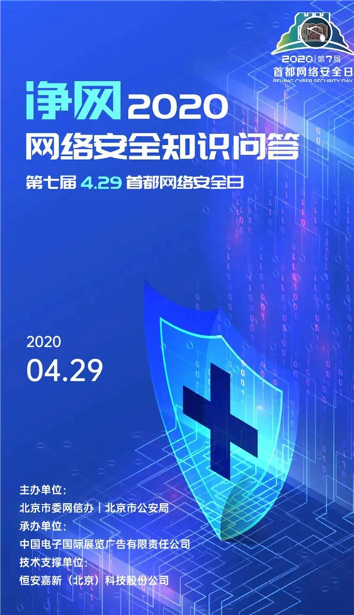 2020年4月29日是第七届首都网络安全日。2014年以来,“首都网络安全日”已走过六个年头,以“网络安全同担,网络生活共享”为主题,通过举办“北京国际互联网科技博览会暨世界网络安全大会”、网络安全高峰论坛、网络安全技术大赛、全民网络安全教育展,建立参与性和互动性强的网络安全体验基地等丰富多彩的系列宣传活动,与社会各界和广大群众携手合作,共同关注网络安全、维护网络秩序、为建设首都绿色生态网络环境不懈努力。