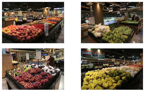 进入首客生鲜超市,可以看到货架上的水果,蔬菜以及肉类新鲜充足,品类齐全,并未出现断货、供应不足等情况。